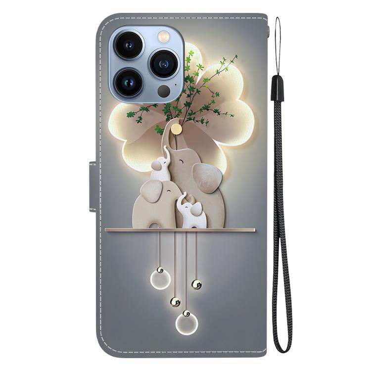 Funda de Cuero con Dibujo de Colores y Textura de Cristal para iPhone 15 Pro (Tres Ciervos)