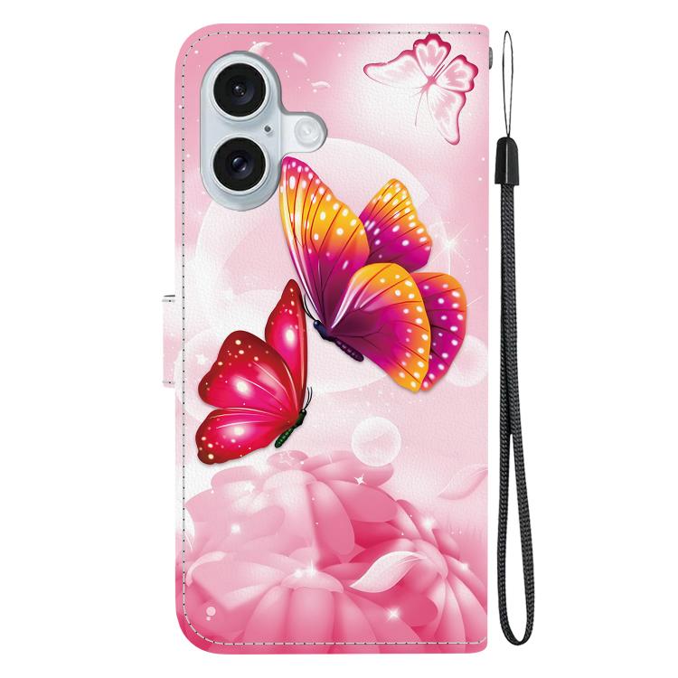 Funda de Cuero para iPhone 16 con Dibujo de Colores y Textura de Cristal (Mariposas Rosas)