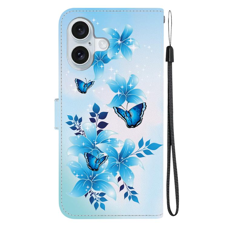 Funda de Cuero para iPhone 16 Plus con Dibujo de Colores y Textura de Cristal (Mariposas Azules)