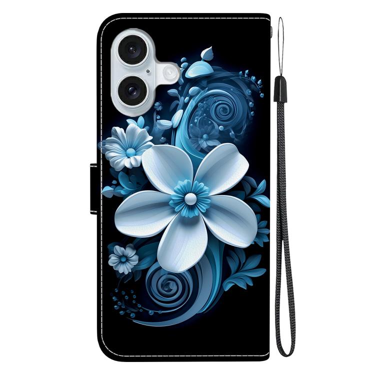 Funda de Cuero para iPhone 16 Plus con Dibujo de Colores y Textura de Cristal (Orquídea Negra)