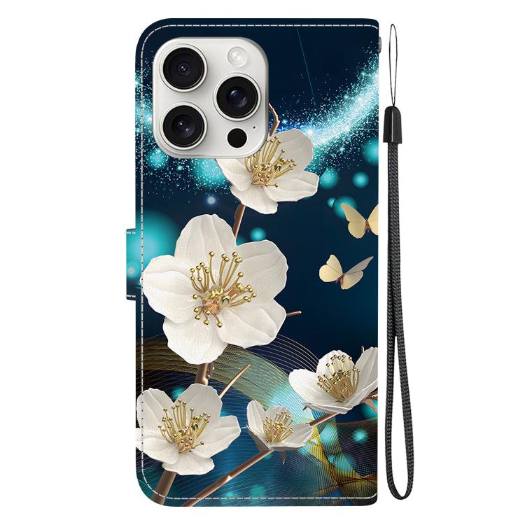 Funda de Cuero para iPhone 16 Pro Max con Dibujo de Colores y Textura de Cristal (Magnolia)