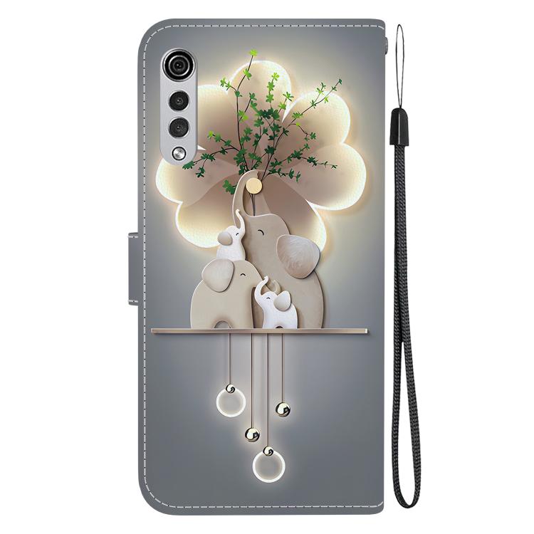 Funda de Cuero con Dibujo de Colores y Textura de Cristal para LG Velvet 5G/G9 4G (Elefantes)