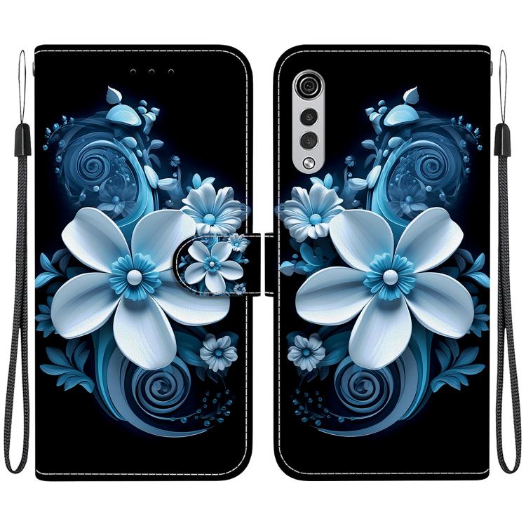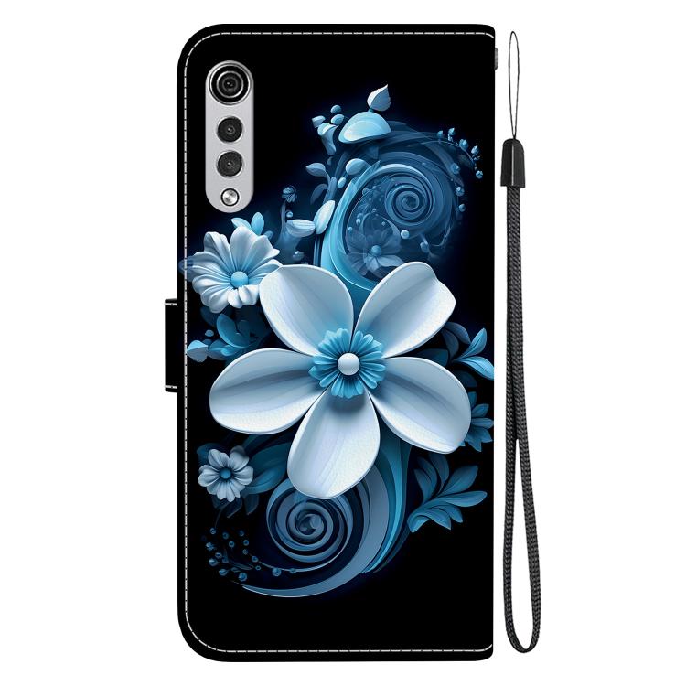 Funda de Cuero con Dibujo y Textura de Cristal para LG Velvet 5G/G9 4G (Orquídea Negra)