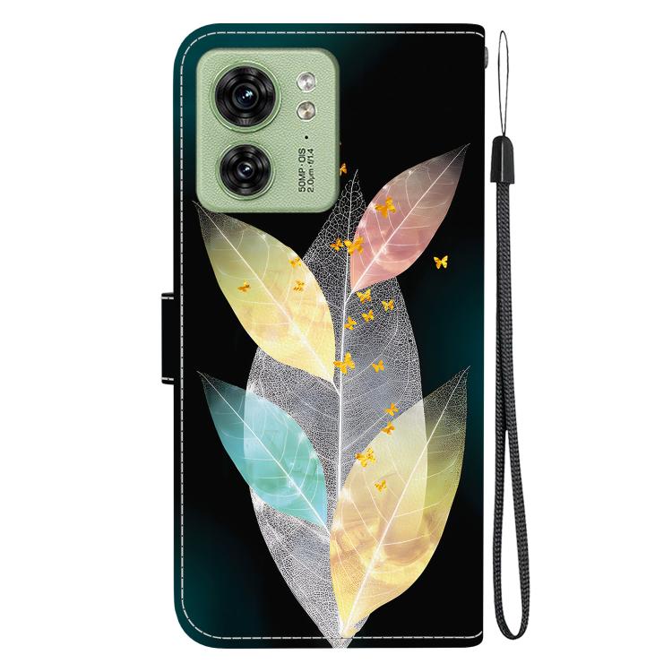 Funda de Cuero para Motorola Edge 40 con Dibujo de Hojas de Colores y Textura de Cristal