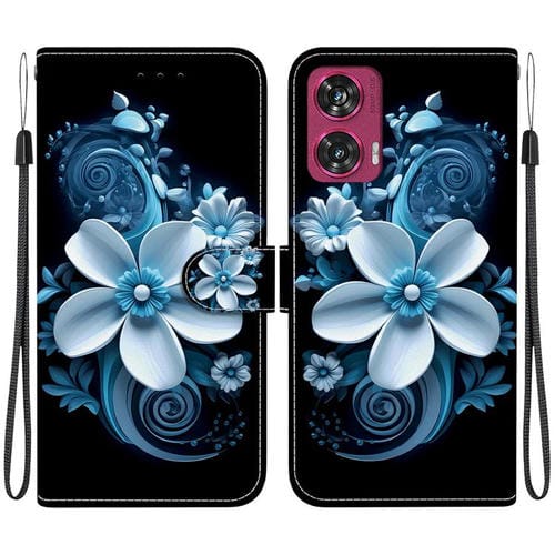 Funda de Cuero Motorola Edge 50 Fusion con Dibujo de Colores y Textura de Cristal (Orquídea Negra)