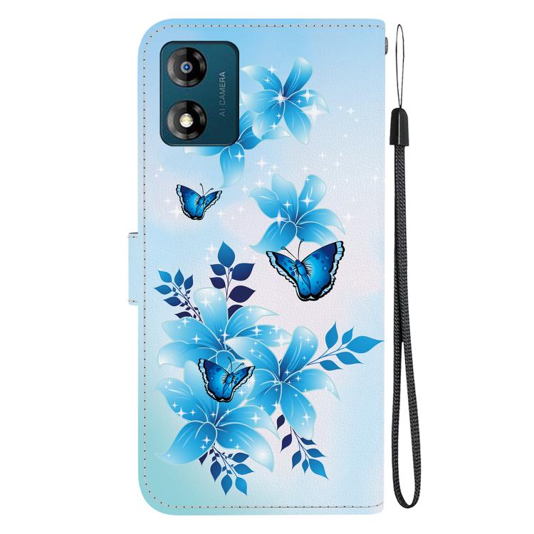Funda de Cuero para Motorola Moto E13 con Dibujo de Colores y Textura de Cristal (Mariposas Azules)