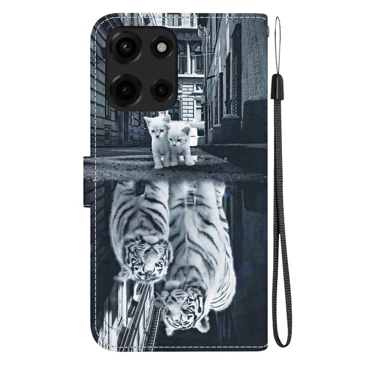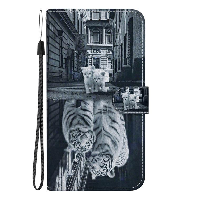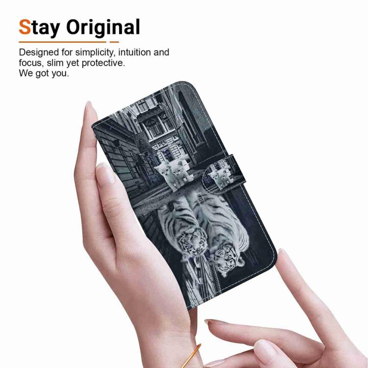 Funda de Cuero Motorola Moto G 5G (2025) con Dibujo de Colores y Textura de Cristal (Reflejo de Gato y Tigre)
