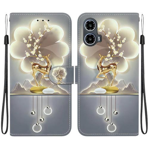 Funda de Cuero Motorola Moto G34 5G con Dibujo de Colores y Textura de Cristal (Ciervo Sika)