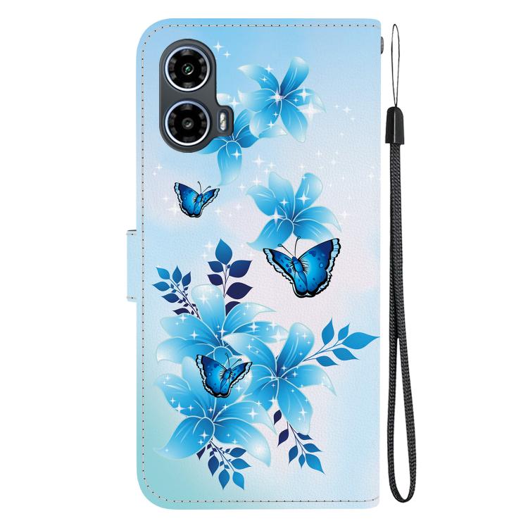 Funda de Cuero para Motorola Moto G34 5G con Dibujo de Colores y Textura de Cristal (Mariposas Azules)