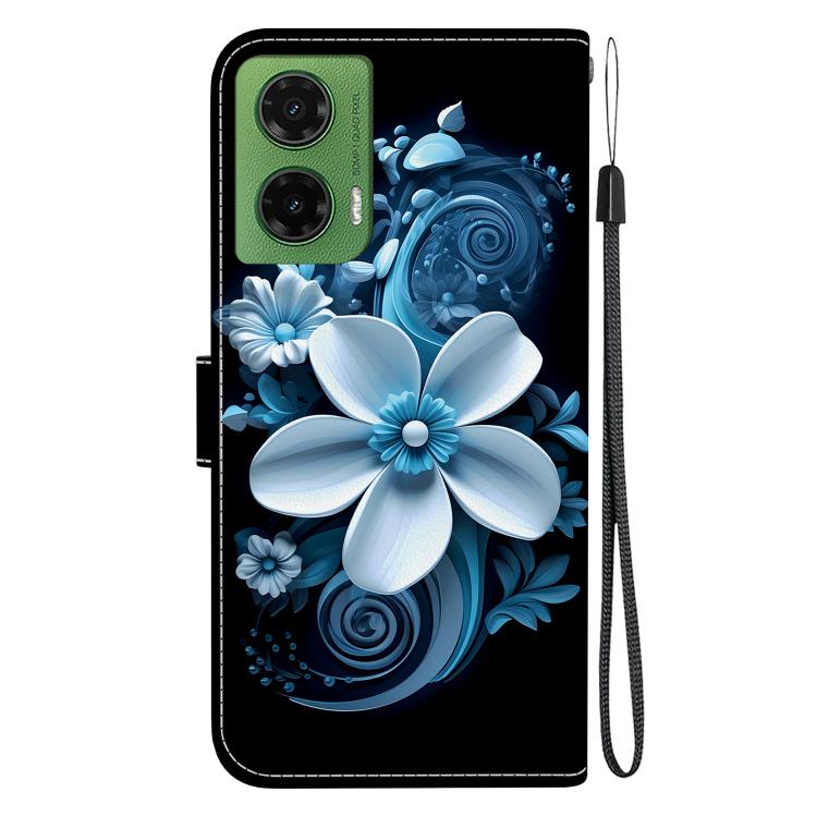 Funda de Cuero para Motorola Moto G35 con Dibujo de Colores y Textura de Cristal (Orquídea Negra)