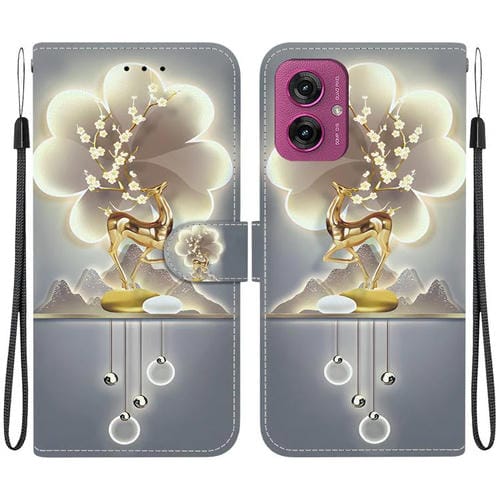 Funda de Cuero con Dibujo y Textura de Cristal para Motorola Moto G55 (Ciervo Sika)