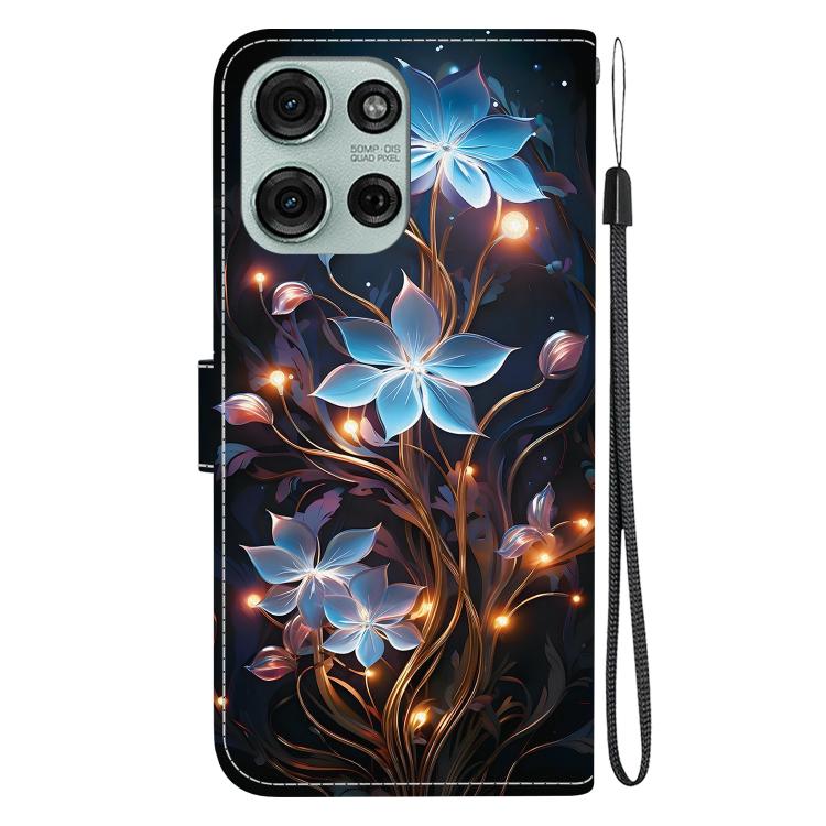 Funda de Cuero para Motorola Moto G75 5G con Dibujo de Colores y Textura de Cristal (Flor de Linterna Pequeña)