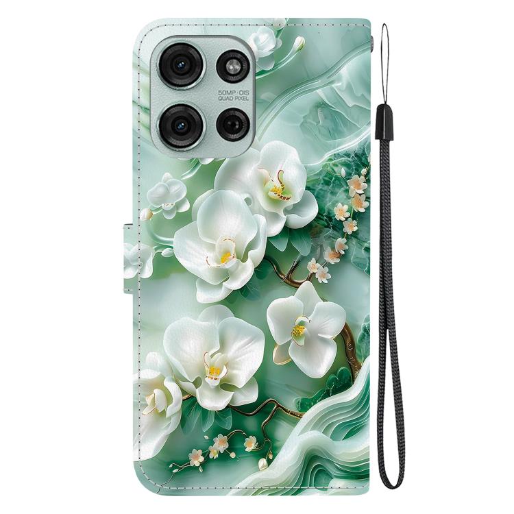 Funda de Cuero para Motorola Moto G75 5G con Dibujo de Colores y Textura de Cristal (Flores de Jade)