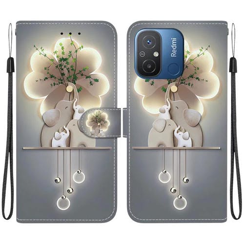 Funda de Cuero con Dibujo de Colores y Textura de Cristal para Redmi 12C/11A (Elefantes)