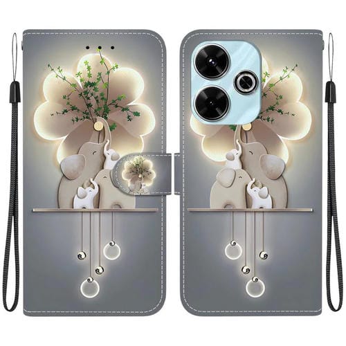 Funda de Cuero con Dibujo de Colores y Textura de Cristal para Redmi 13 4G/Poco M6 (Elefantes)
