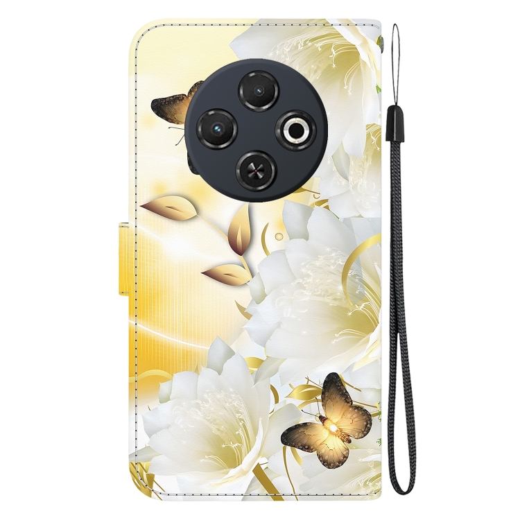Funda de Cuero para Tecno Spark 30C con Dibujo de Colores y Textura de Cristal (Mariposa Dorada Epiphyllum)