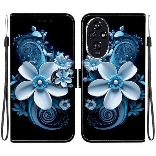 Funda de Cuero con Dibujo de Colores y Textura de Cristal para Honor 200 5G (Orquídea Negra)