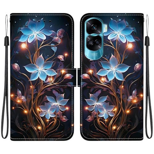 Funda de Cuero Honor 90 Lite con Dibujo de Colores y Textura de Cristal (Flor de Linterna Pequeña)