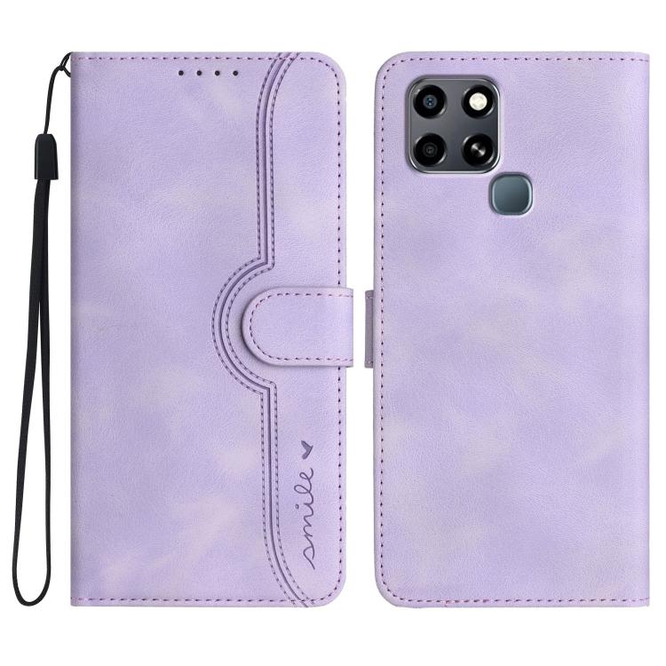 Funda de Cuero con Diseño de Corazón para Infinix Smart 6 y Smart 6 HD (Morado)