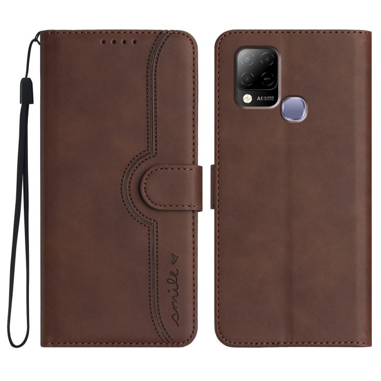 Funda de Cuero para Infinix Hot 10T y Hot 10S con Diseño de Corazón y Tacto Sedoso (Marrón)