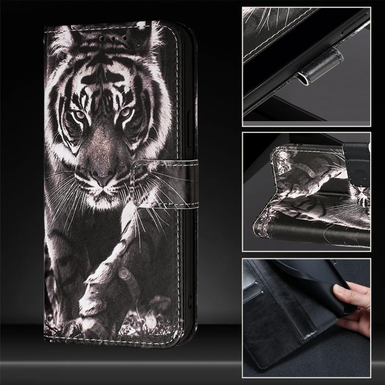 Funda de Cuero para ZTE Nubia Z60 Ultra con Diseño Tigre Blanco y Negro