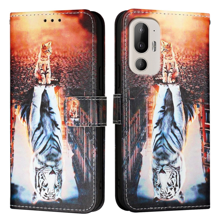 Funda de Cuero para HTC U24 Pro con Diseño de Gatos y Tigres (Colores Lisos)
