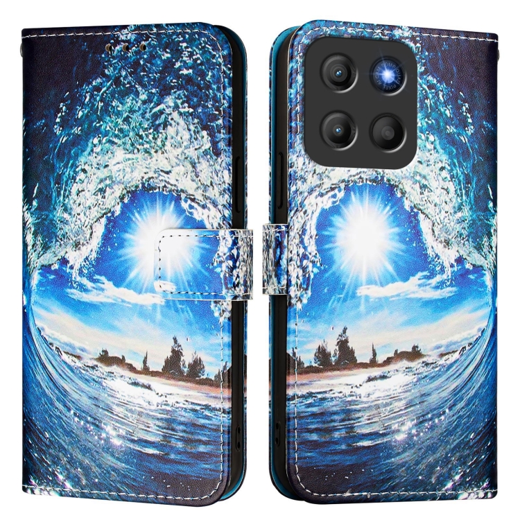 Funda de Cuero Motorola Moto G15 con Diseño Ondas y Sol (Colores Lisos)