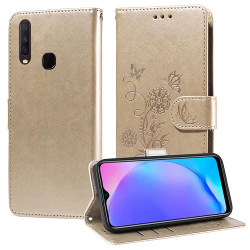 Funda de Cuero con Diseño de Mariposas y Flores En Relieve para Vivo Y17/Y15 (Dorada)
