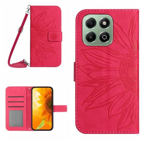 Funda de Cuero con Diseño de Flores y Sol para Honor 200 con Cordón y Tacto Inteligente (Rosa y Rojo)