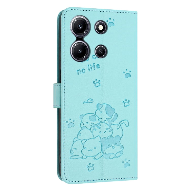 Funda de Cuero Infinix Note 30I con Diseño de Gatito en Relieve y Cordón (Verde Menta)