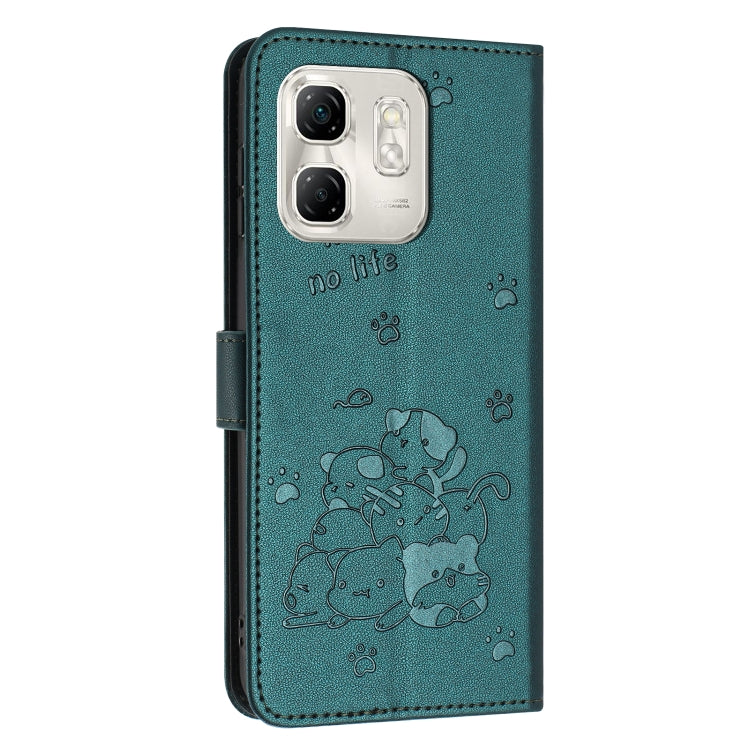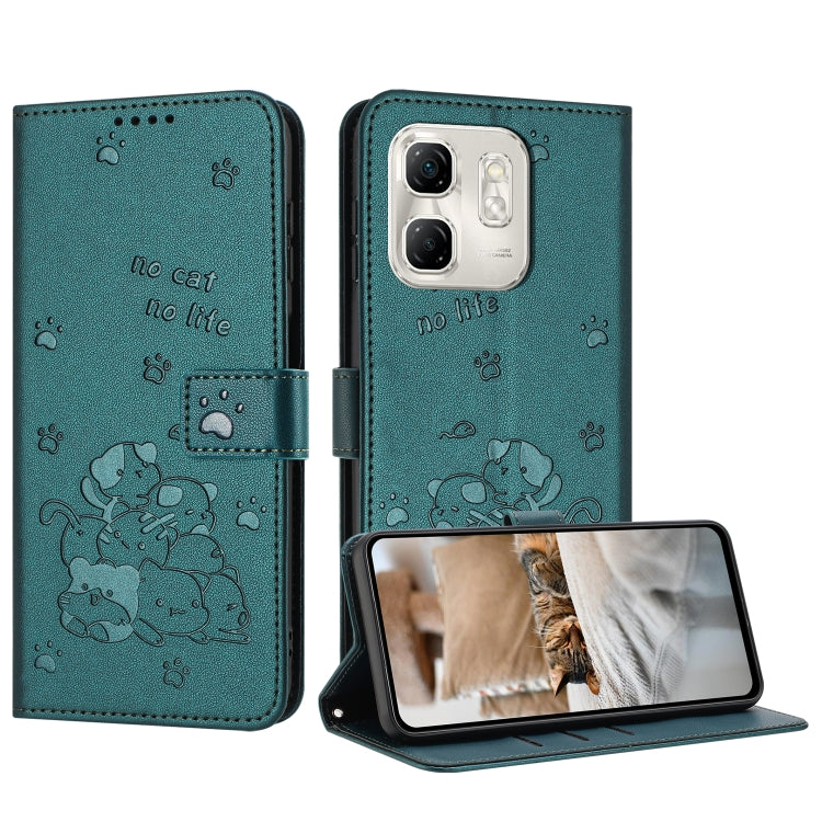 Funda de Cuero Infinix Smart 9 5G Hot 50I 5G con Diseño de Gatito y Cordón (Verde Oscuro)
