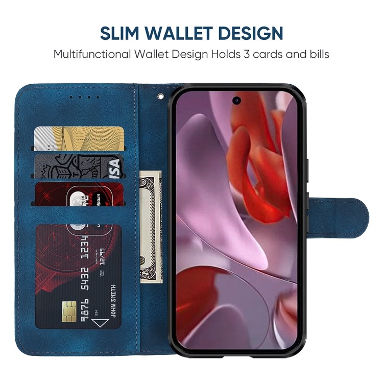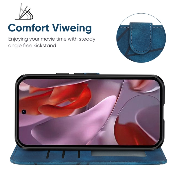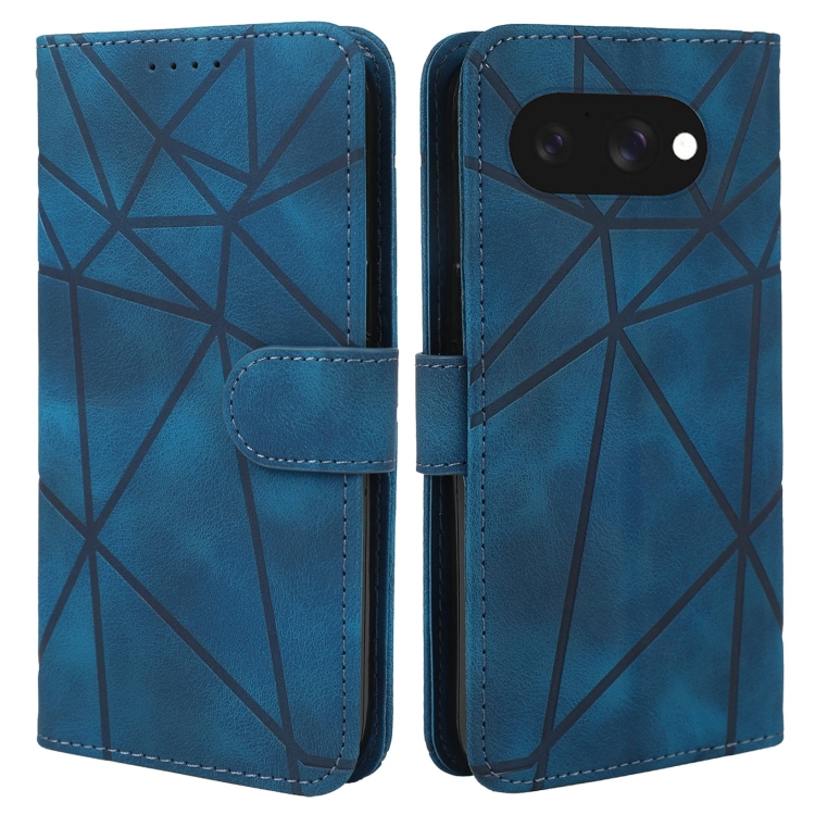 Funda de Cuero Google Pixel 9A con Diseño de Líneas Geométricas y Tacto Agradable (Azul)