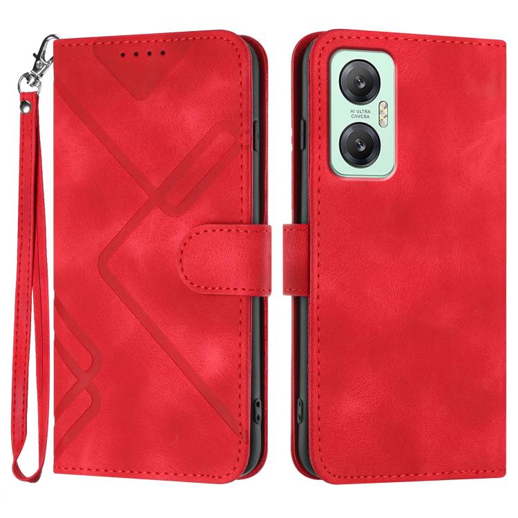 Funda de Cuero para Infinix Hot 20 5G con Diseño de Líneas y Tacto Suave (Rojo)