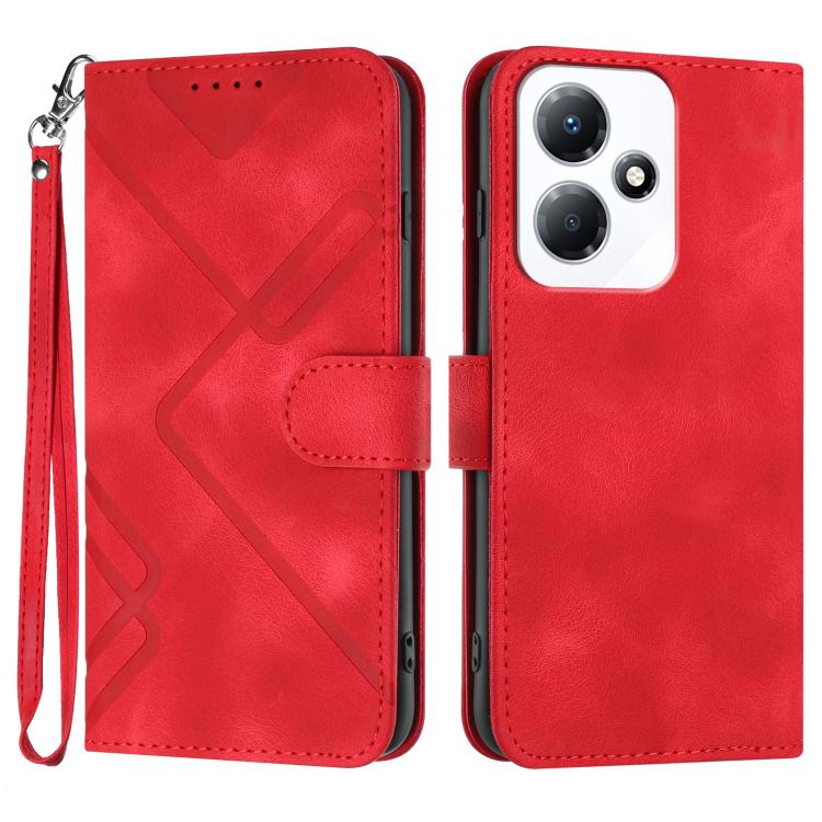 Funda de Cuero para Infinix Hot 30 Play y Hot 30 Play Nfc con Diseño de Líneas (Rojo)