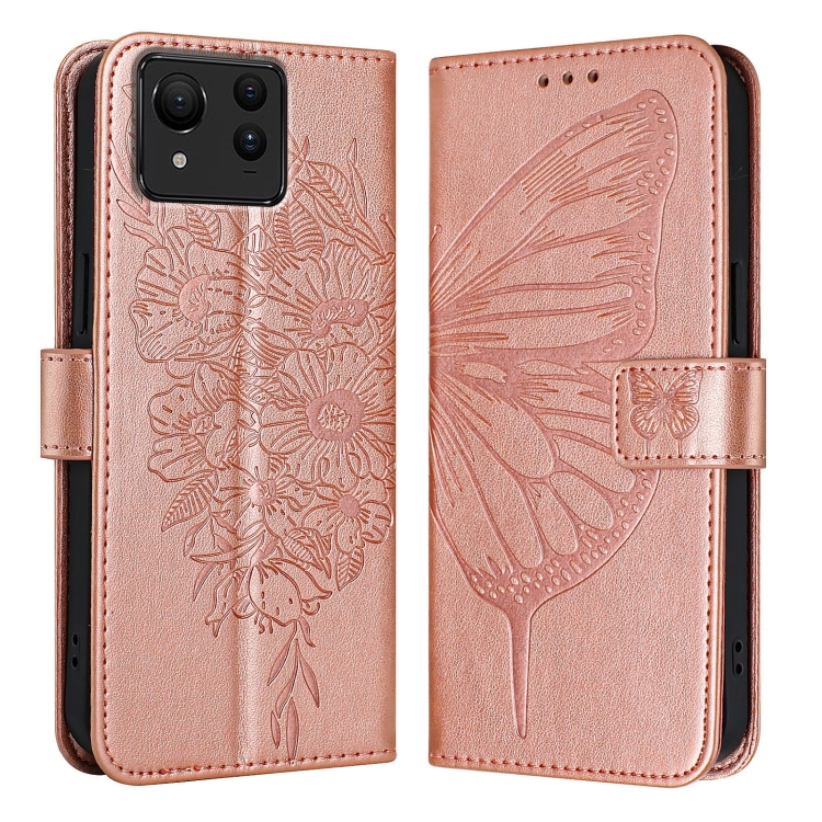 Funda de Cuero Asus Zenfone 11 Ultra con Diseño de Mariposa en Relieve (Oro Rosa)