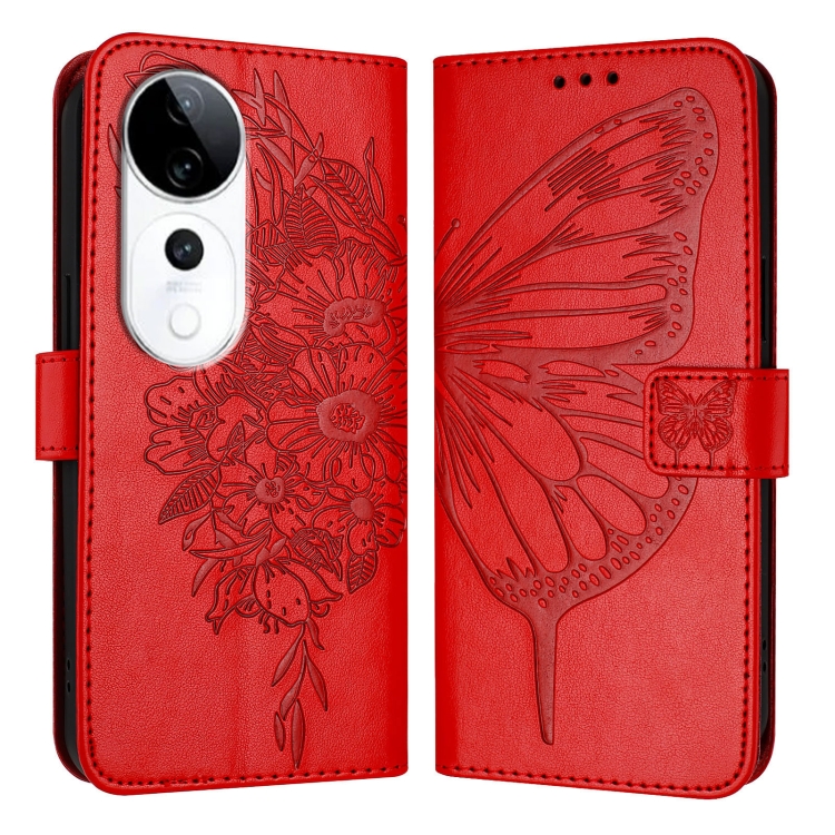 Funda de Cuero con Diseño de Mariposa En Relieve para El Teléfono Vivo S19 Pro (Rojo)