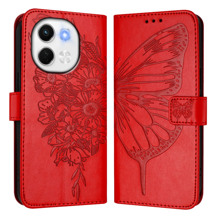 Funda de Piel para Tecno Spark 30 5G y Pova 6 Neo 5G con Mariposa en Relieve (Roja)
