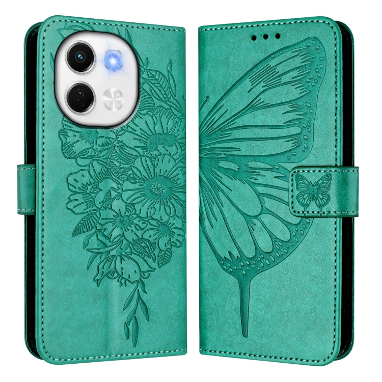 Funda de Piel para Tecno Spark 30 5G y Pova 6 Neo 5G con Diseño de Mariposa en Relieve (Verde)
