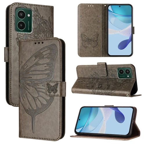 Funda de Cuero para Teléfono Hmd Pulse Pro con Diseño de Mariposa en Relieve (Gris)
