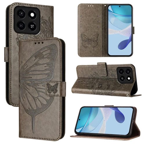 Funda de Cuero para ZTE Blade A35/A55 con Diseño de Mariposa En Relieve (Gris)