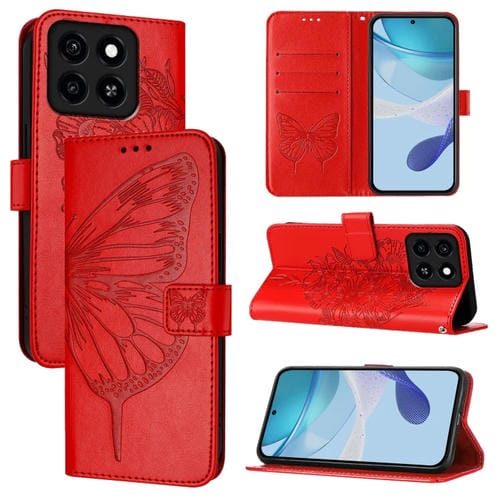 Funda de Cuero ZTE Blade A35/A55 Diseño Mariposa En Relieve (Roja)