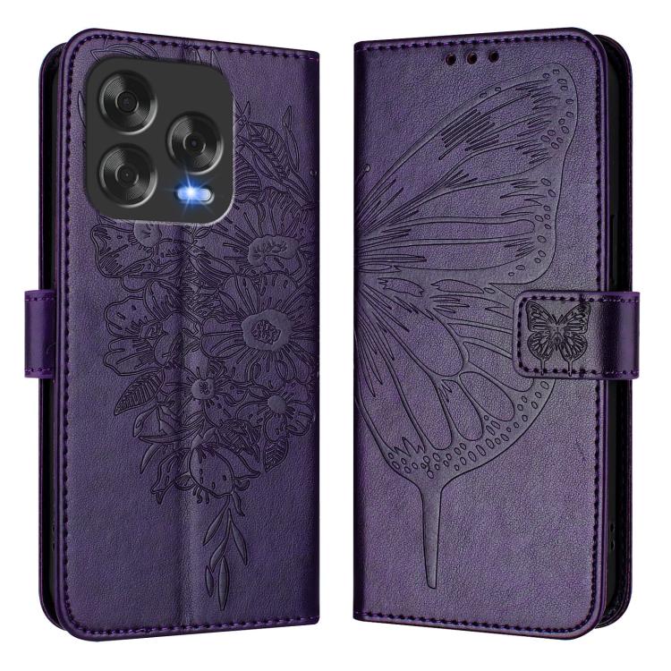 Funda de Cuero para ZTE Blade V70 con Diseño de Mariposa en Relieve (Morado Oscuro)