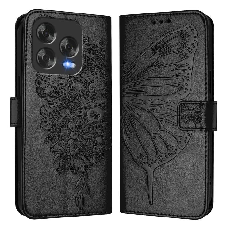 Funda de Cuero para ZTE Blade V70 con Diseño de Mariposa en Relieve (Negra)