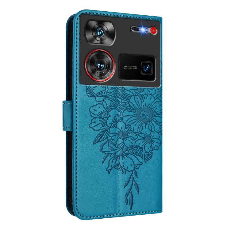 Funda de Cuero para ZTE Nubia Z60 Ultra con Diseño de Mariposa en Relieve (Azul)