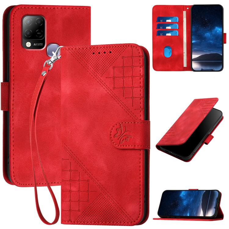 Funda de Cuero para Infinix Hot 10T/Hot 10S con Diseño Mariposa en Relieve y Cordón (Rojo)