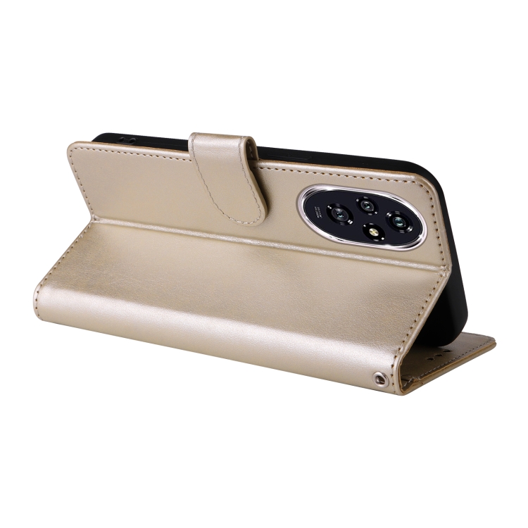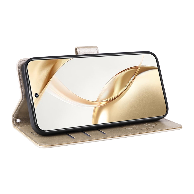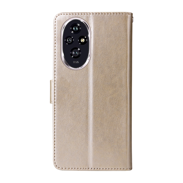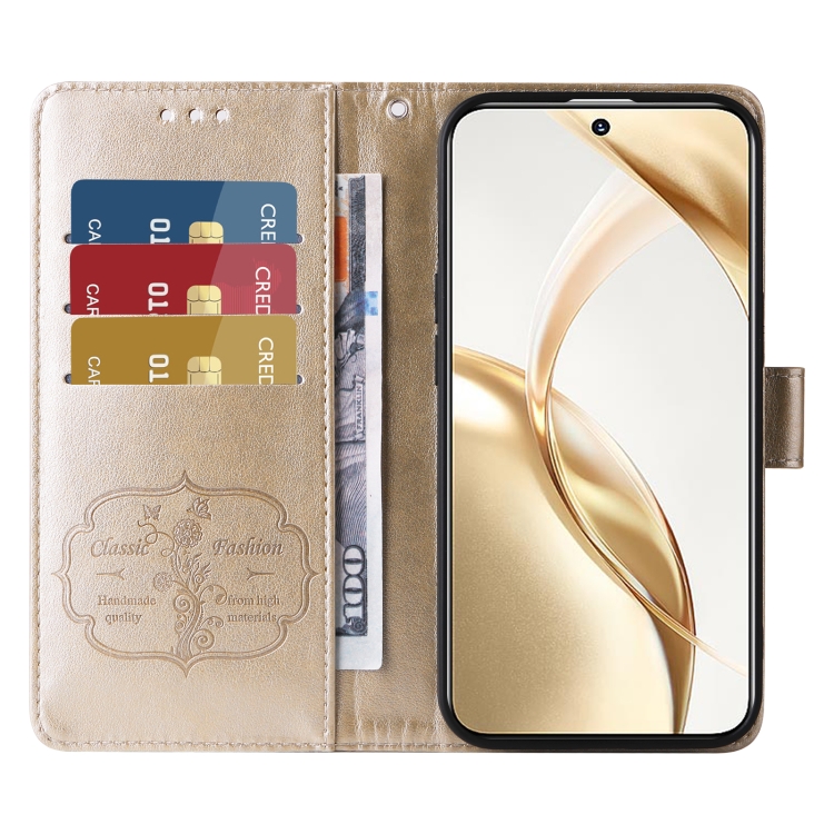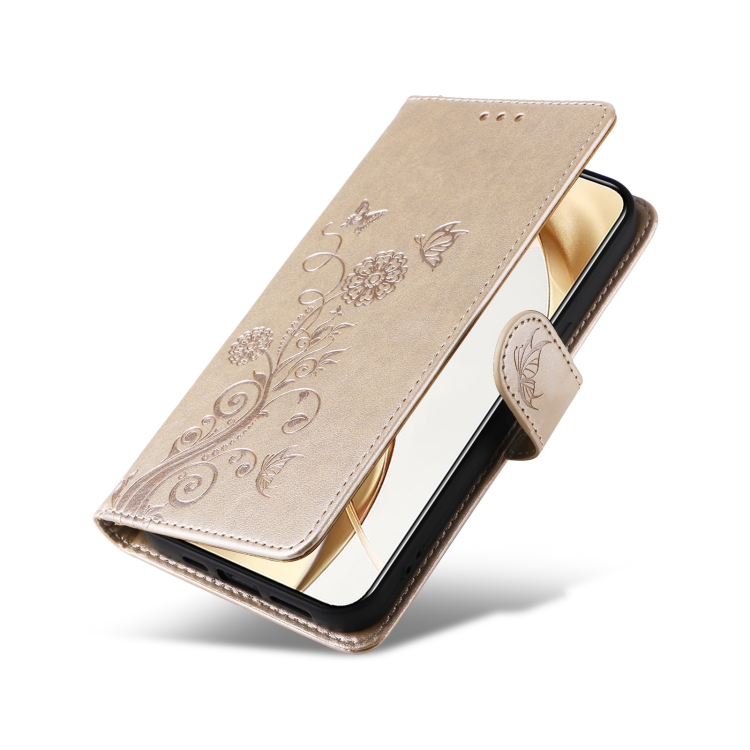 Funda de Cuero Honor 200 con Diseño de Mariposas y Flores en Relieve (Dorada)