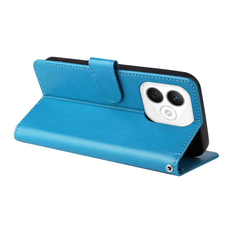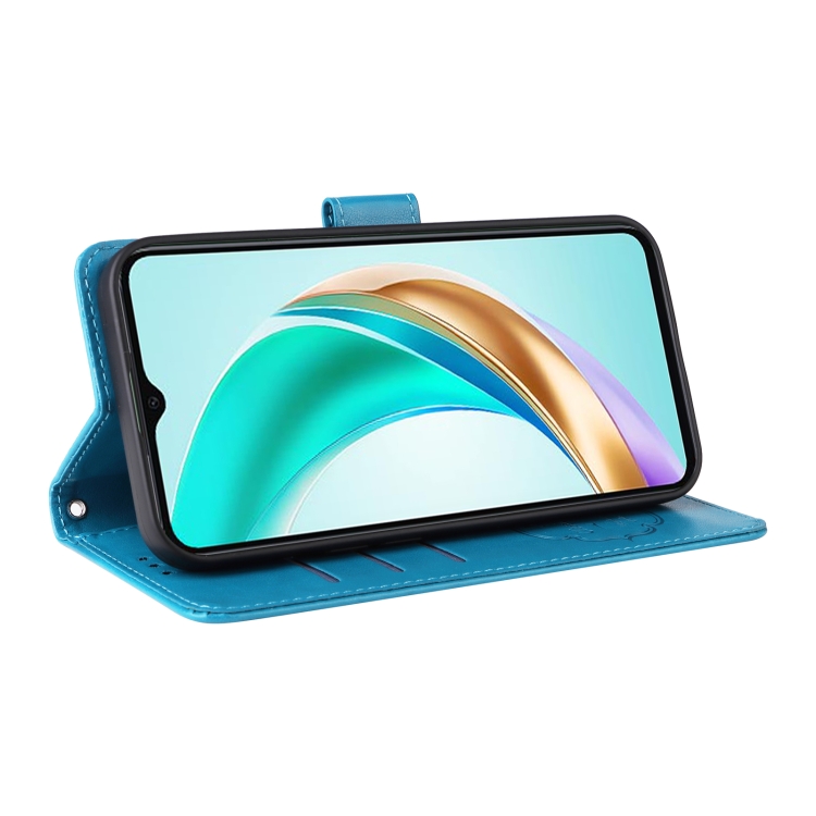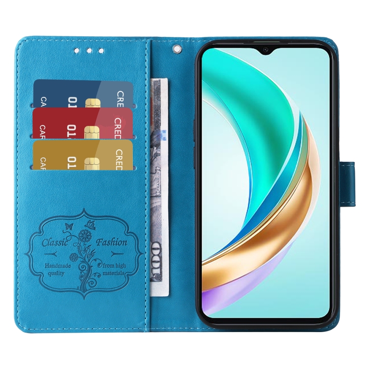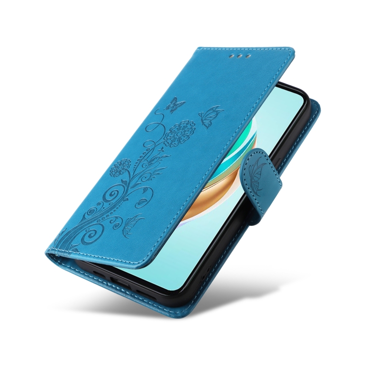 Funda de Cuero para Honor X60I con Diseño de Mariposas y Flores en Relieve (Azul)