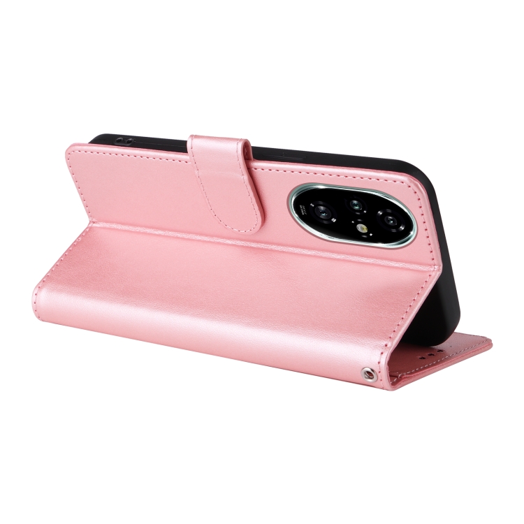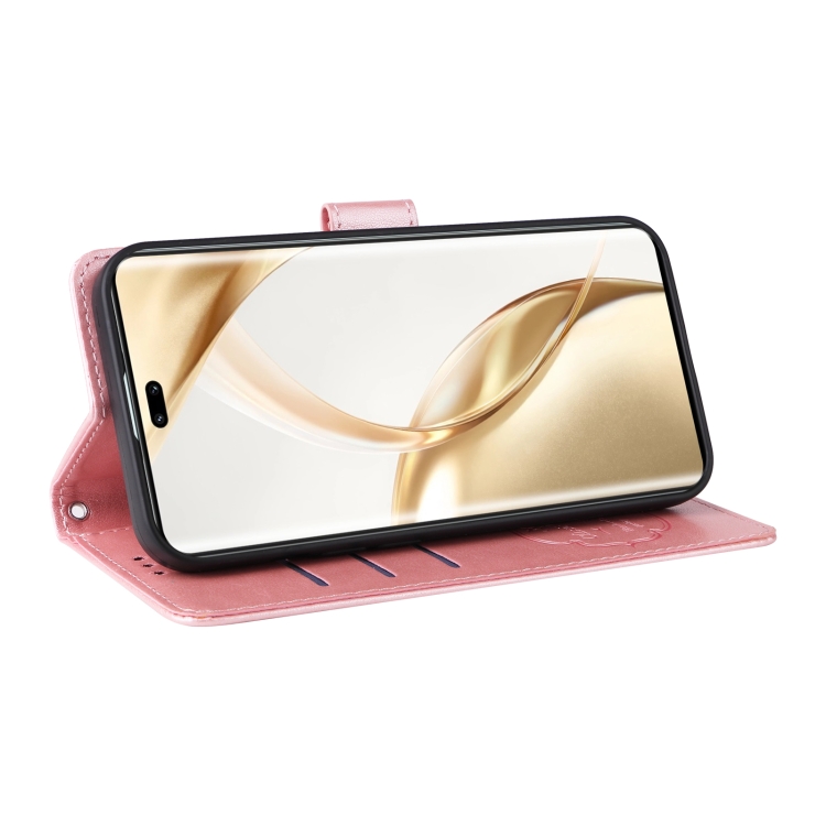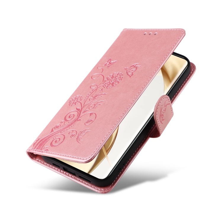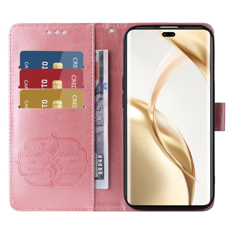 Funda de Cuero para Honor 200 Pro con Diseño de Mariposas y Flores en Relieve (Oro Rosa)