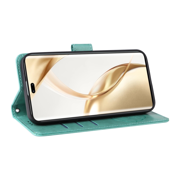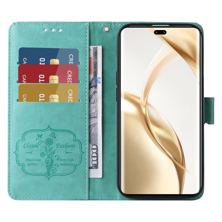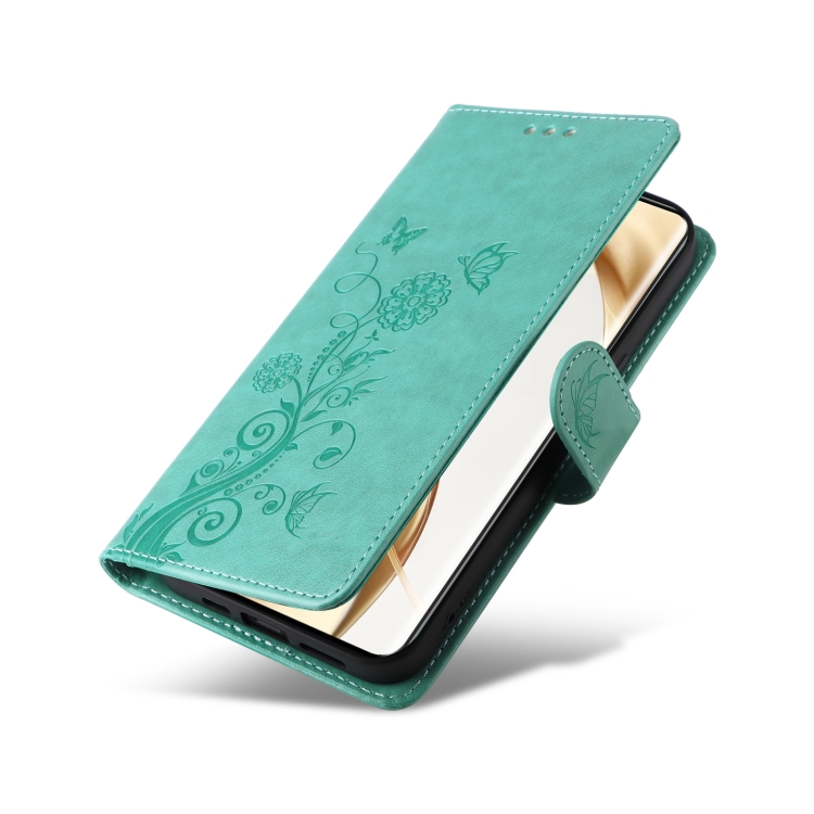 Funda de Cuero para Honor 200 Pro con Diseño de Mariposas y Flores en Relieve (Verde)