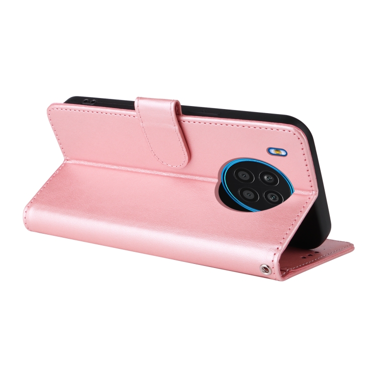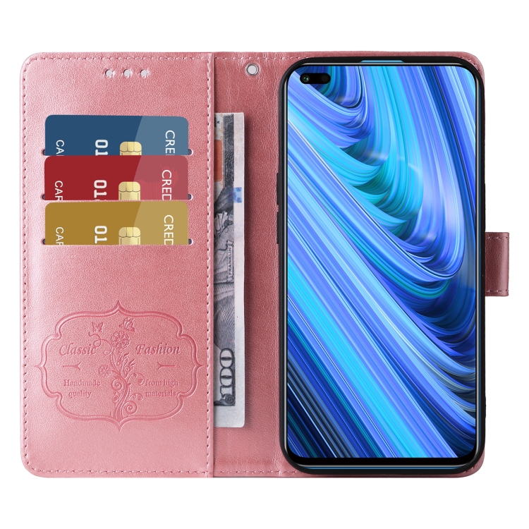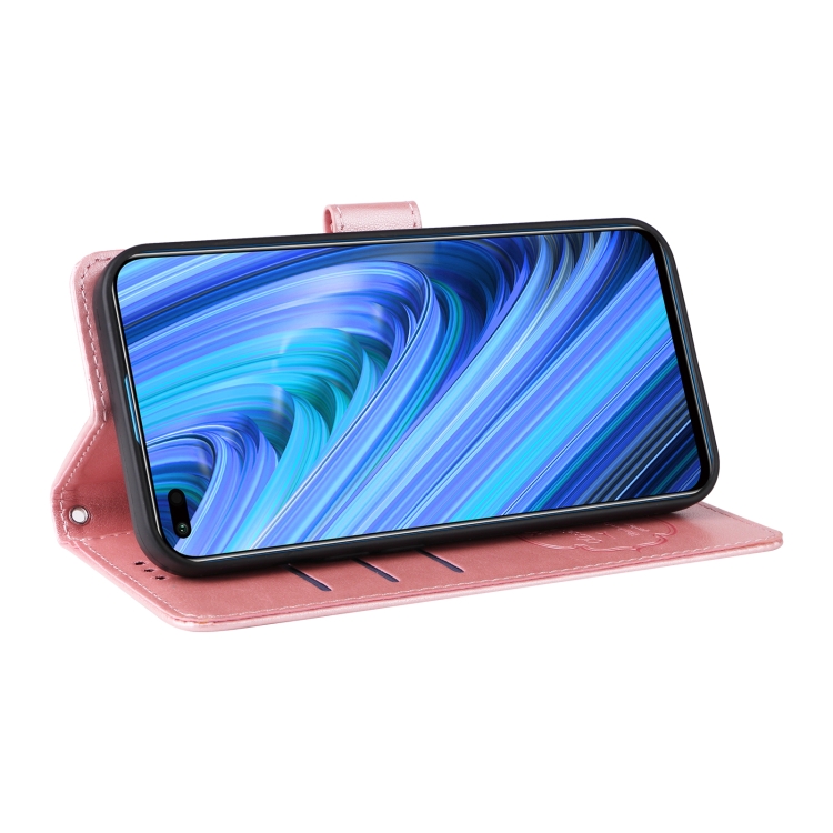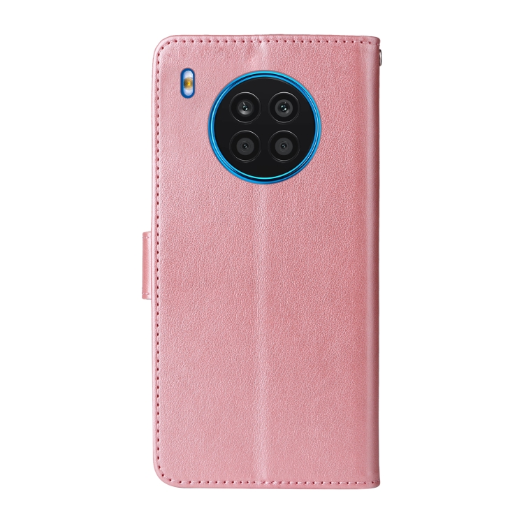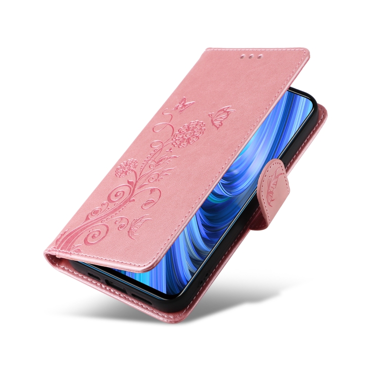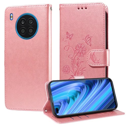 Funda de Cuero con Mariposas y Flores en Relieve para Honor 50 Lite/X20/Huawei Nova 8I (Oro Rosa)